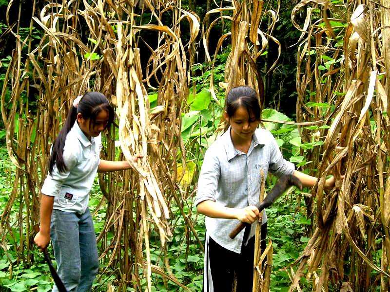 他们还想去山里找些什么野果给我,我劝住了她们,让她们做她们平时做的事吧。于是,她俩去玉米地里干活,一招一式都是那么老练。