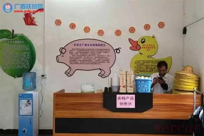 河池市首个以关心关怀扶贫干部的服务平台——“扶贫红色驿站”在环江毛南族自治县长美乡关安村揭牌并试运行。图为驿站里的农特产品销售区。(蒙宏谯 覃义坚 冉毅宏 蒙东林/摄)