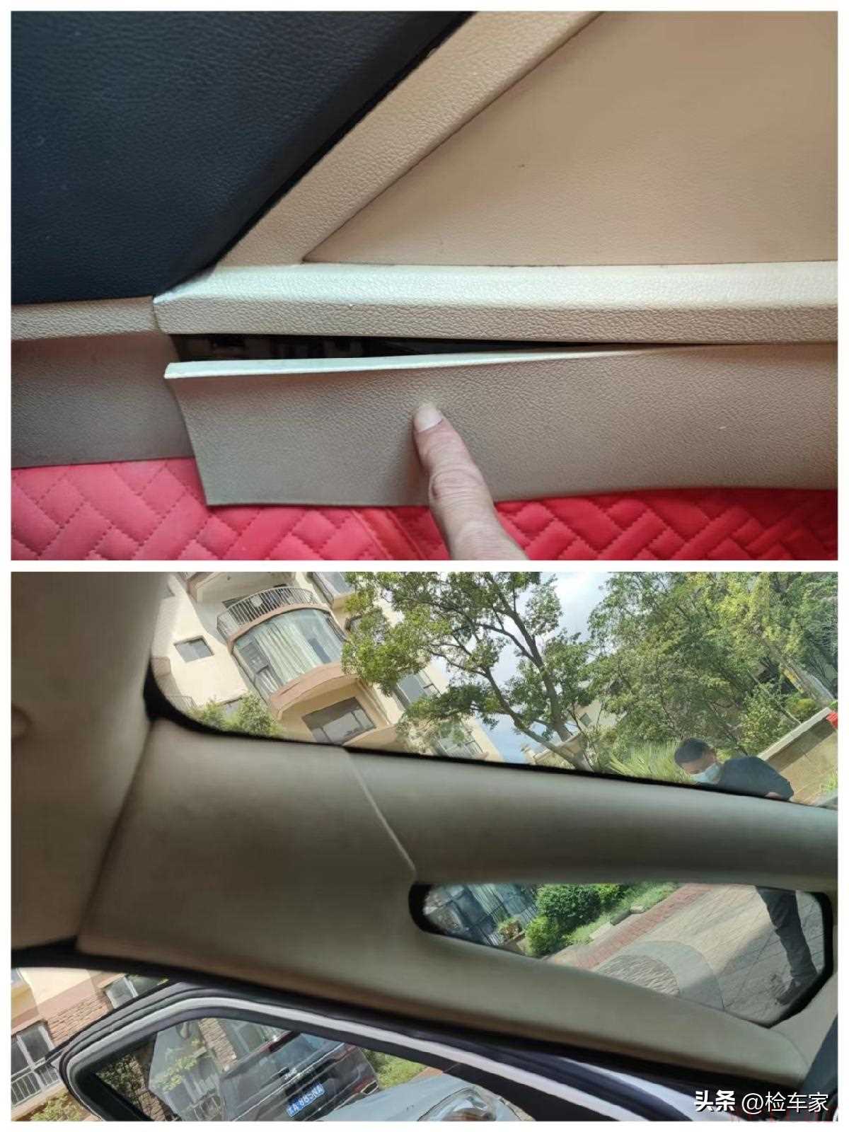 由于车主改了顶棚,所以内饰方面都有拆装痕迹,不过这手艺却不敢恭维!!!到处都是呲牙裂口的。