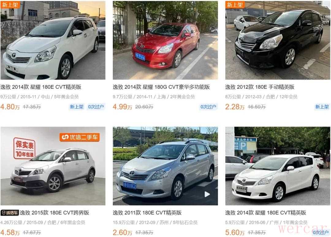 虽然丰田车的保值率一直算是很高的,但相对小众的逸致算是个例外。最早上市的2011款逸致1.8L自动挡版本,如今二手价基本在2万大几到3万出头的样子;如果你的预算比较足,那么花4万多就能买到2014款1.8L自动挡,而且是车况相当透明的车型。