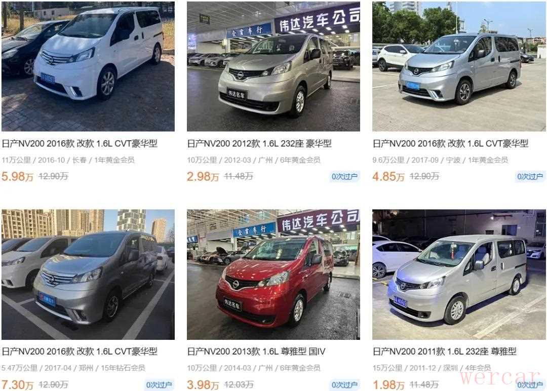 因为NV200在合资MPV中定价比较低,最早上市的2010款入门版的售价不到10万,所以现在大家在二手市场上花2万块钱就能买到早期的手动挡车型,而车龄较短的2014款自动挡车型价格就要4-5万了。