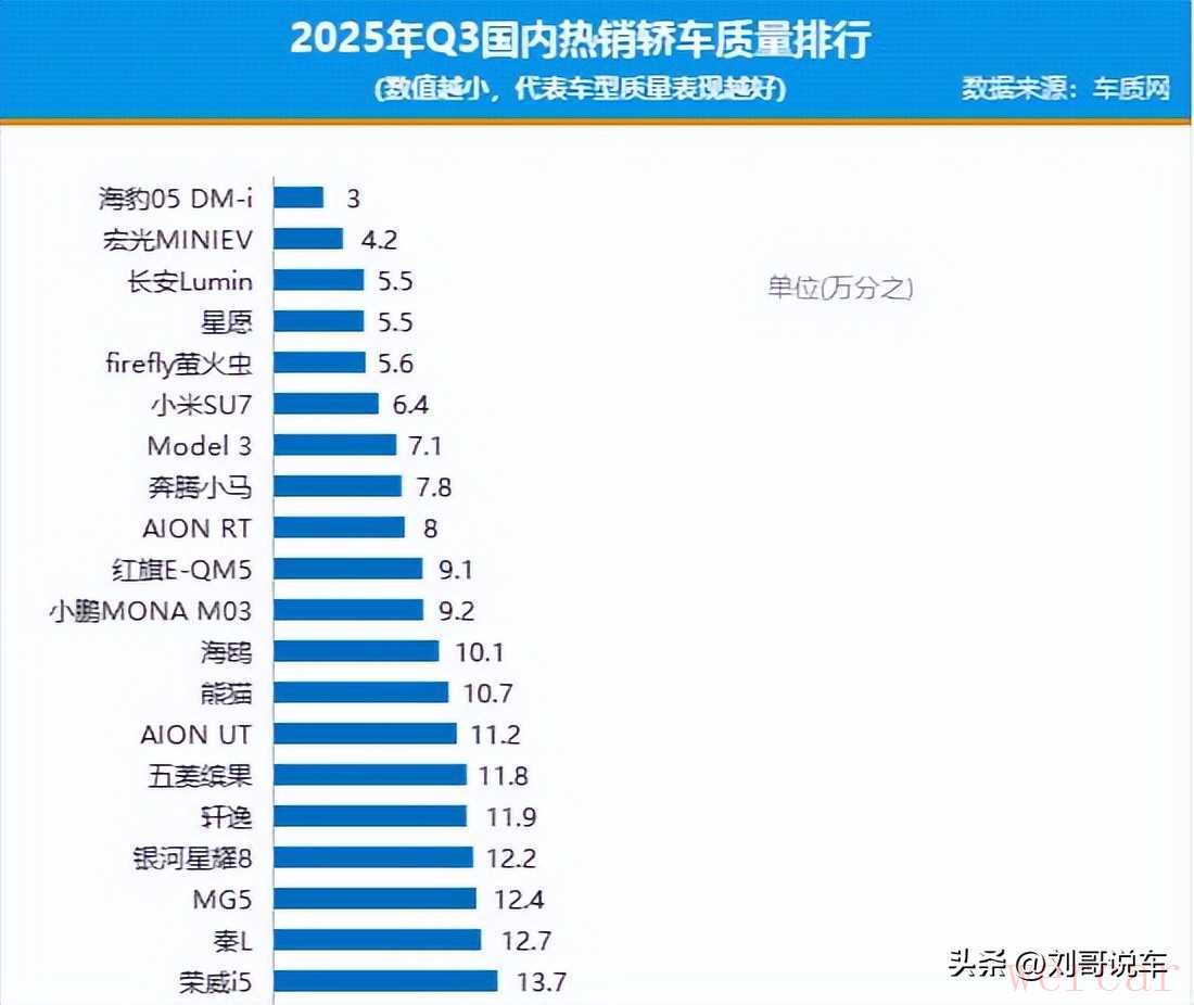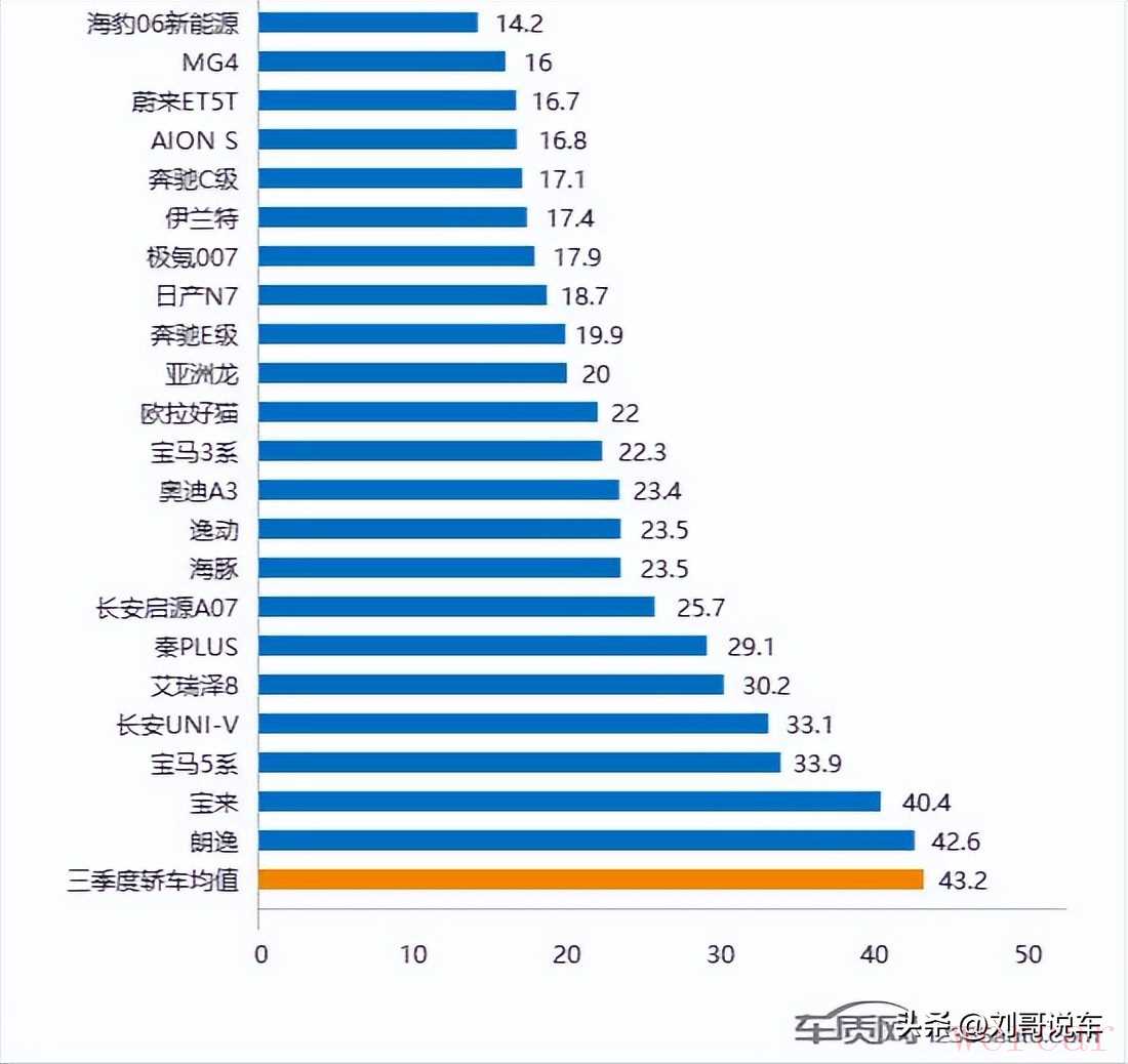 轿车选购必看!最新质量排行揭晓,国产车型领跑,海鸥跃升至第12,朗逸遗憾居第42