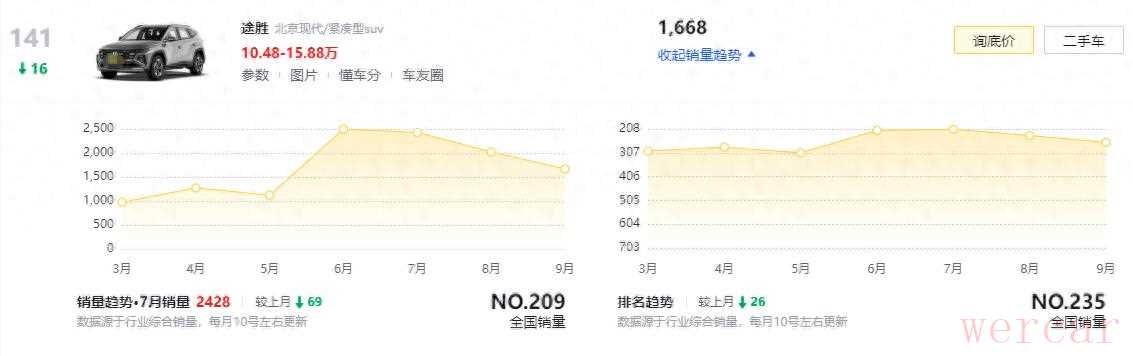 来自韩系的现代途胜,目前正是这一尴尬的情况。终端销量来看,途胜在过去数月的销量表现,都谈不上乐观,月销巅峰也仅仅只有2000多台,相较于同级竞品,诸如本田CR-V、丰田威兰达等,途胜的销量仅仅是它们零头。