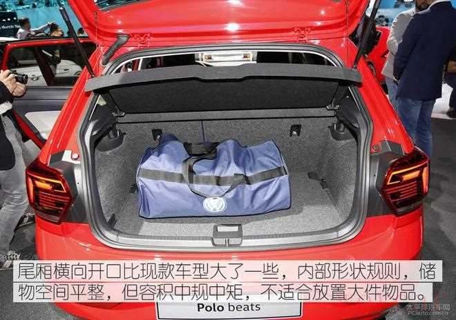 前文在介绍全新Polo外观的时候,提到了尾厢开口变大这一信息点。实际打开尾厢门,我们可以发现,尾厢开口的宽度,基本上与车内轮拱罩齐平,尾厢内部形状也十分规则,但容积并不大。