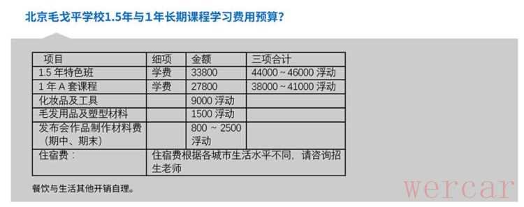 小伊的选择并非没有道理。新周刊记者向毛戈平化妆培训学校咨询课程时,客服表示,学员选择最多的课程,是为期三个半月的基础课程和为期半年的化妆造型全科课程,两门课的学费分别为13800元和17800元。加上配置化妆用品与食宿所需的费用,上完课下来,花销至少2万元。