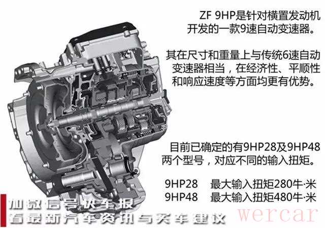 冠道用ZF的变速箱的原因:首先得讲逼格,不管懂不懂变速箱的人听到9AT就觉得高端大气上档次。而且从理论上来讲,注意,是理论上!9AT变速箱必须要先进几个等级。就说ZF的这套9AT吧,官方给出的测试结果是百公里加速性能比现在成熟的6AT要快2秒,油耗相对也低了11.4%,二氧化碳排放量低了9.5%,齿比范围达到了9.81。而且以现在的技术和工艺水平,9AT变速箱在重量和体积上完全能达到6AT变速箱的水平了。你看,不管是从燃油经济性、平顺性还是性能上来看,这9AT都应该大大推广应用啊!