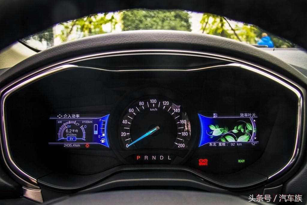 2017款新蒙迪欧HEV版本仪表盘右侧的绿叶动画时刻提醒你“如何驾驶更环保”