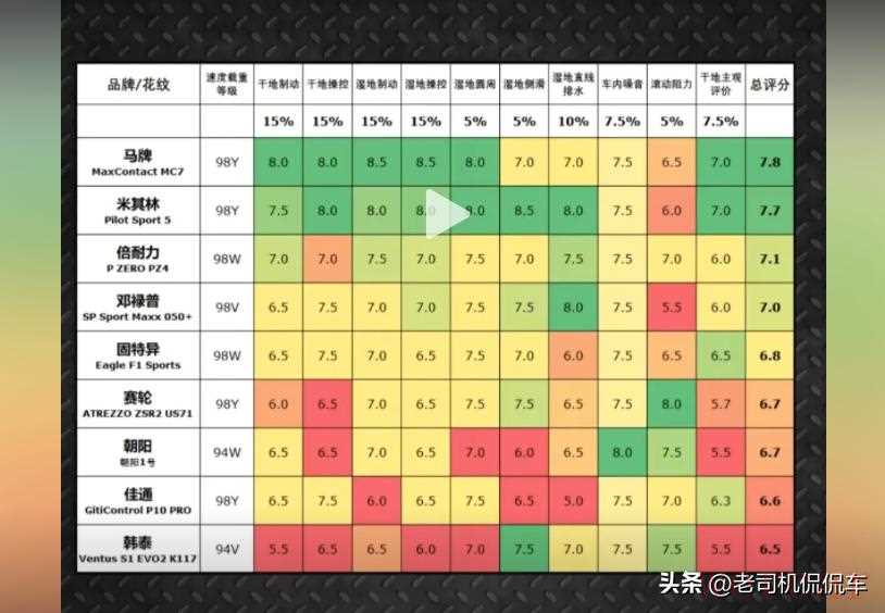 去年参测的中国轮胎品牌,有赛轮,也有呼声很高的朝阳1号,国外品牌有德国马牌、法国米其林、意大利倍耐力、英国邓禄普、美国的固特异,新加坡的佳通和韩国的韩泰,几乎涵盖了国际一二线的轮胎品牌,测试结果显示,马牌的MC7、米其林的PS5、倍耐力的P0依然在干地制动、湿地制动、湿地操控等等测试项目之中,成绩远超中国品牌。