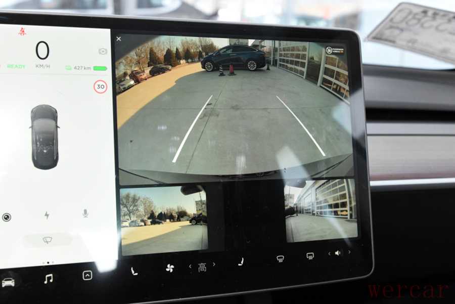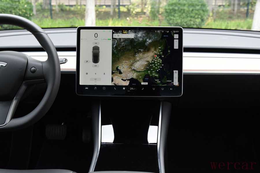 这台Model 3还可以自己驶出高速,在停车区域,也能使用自动泊车功能。不过特斯拉的自动泊车,我觉得和有该功能的大部分智能汽车差别不大,不管是垂直还是侧方位停车,也都能实现准确倒车入库。但在一些细节上有待改进,比如不能自定义停车位,在道路没有画白线的场景下就无法自动泊车了;而且习惯了安卓系统的导航后用这台车上自带的导航会感觉不顺手,有的路况它也显示不出来。
