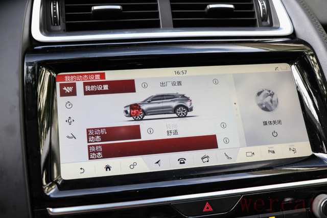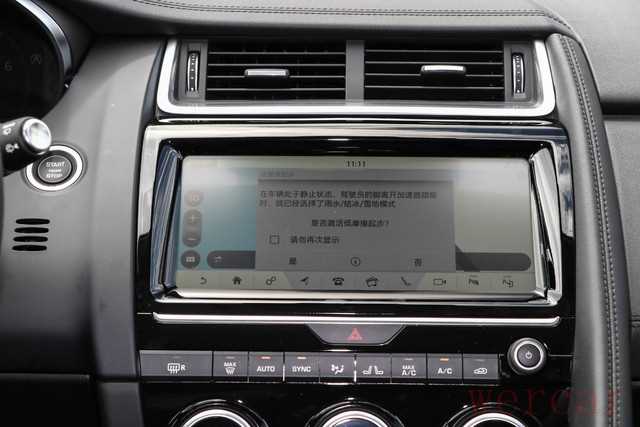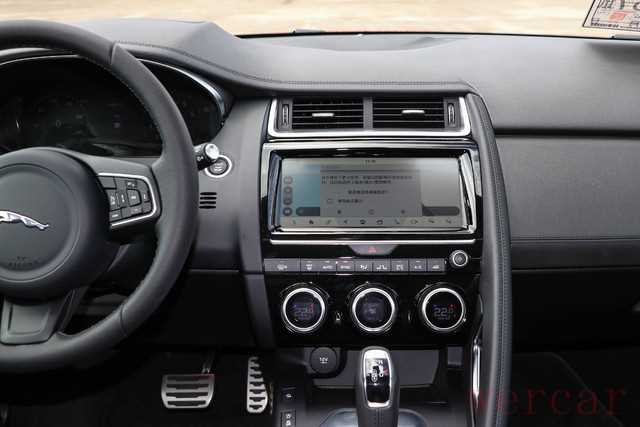 采用了ZF的9AT自动变速箱,捷豹目前只有它和F-TYPE采用了传统的电子挡把设计,其他车型均为旋钮式换挡,E-PACE在全力证明自己的运动能力。