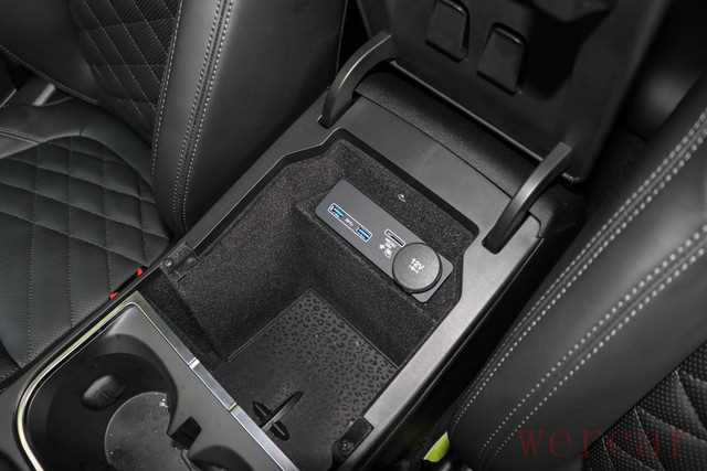 让我更喜欢的是,它前排中央扶手的设计,最大容积可达8.5L,拆除杯架后,这么大的储物空间,任性了。另外合盖后也设计了充电线预留缝隙,不会夹到线,非常人性化。