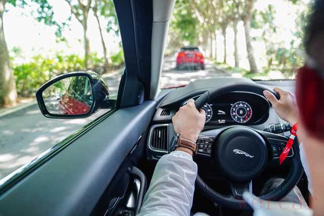 此次试驾的路线基本都是铺装路面,在简短的坑洼路段和蜿蜒的小山路体验了一下,小巧的车身非常自如的穿梭,乡村的坑洼路也完全难不倒离地间隙较高的它。偏向运动风格的设定,在此时我略有担心,本以为它的悬挂会让我很难受,结果我的屁股并没有受罪,但确实要比F-PACE更硬一些。它使用的是电子转向助力,在山里我选择的是运动驾驶模式,方向盘转向力度也调至运动挡,转向的韧劲适中,回馈力度控制的也比较到位,所有的一切都不会给你造成困扰,你只需思考的就是寻找更稳妥的路线行驶。