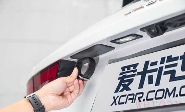 除了随车钥匙之外,还可以通过附赠的一只手环来实现解锁、开启车门等功能。手环感应区域设置在后备厢开关的左侧,关门之后的20s内触发手环感应即可锁车。如果忘带钥匙,又想去后备厢拿东西,这个手环很方便。