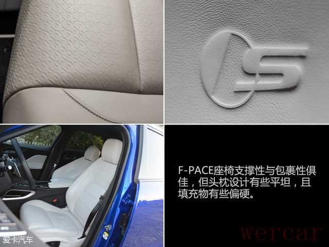F-PACE的运动座椅双排缝线针脚细密别致,配合触感温润的皮革以及带有印花图案的头枕,即便不坐只是看看也十分养眼。