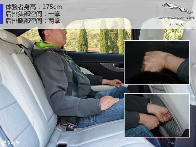 身高175cm的体验者坐进驾驶座,调整好坐姿后头部空间留有一拳+四指;坐进后排,腿部空间两拳,头部则留有一拳。