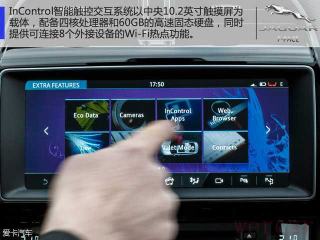InControl智能触控交互系统以中央10.2英寸触摸屏为载体,配备四核处理器和60GB的高速固态硬盘,同时提供可连接8个外接设备的Wi-Fi热点功能。