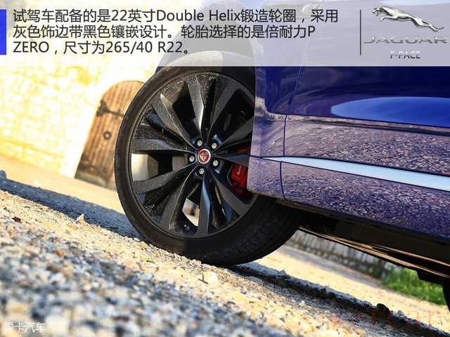 试驾的这款S高性能版车型配备的是22英寸Double Helix锻造轮圈,采用灰色饰边带黑色镶嵌设计。轮胎配备倍耐力P ZERO,尺寸为265/40 R22。试驾车配备非全尺寸轮胎。