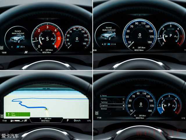 12.3英寸高清液晶仪表板包含两块数字仪表盘和一个中央行车电脑显示屏,带四种视觉主题和全屏幕三维导航显示。