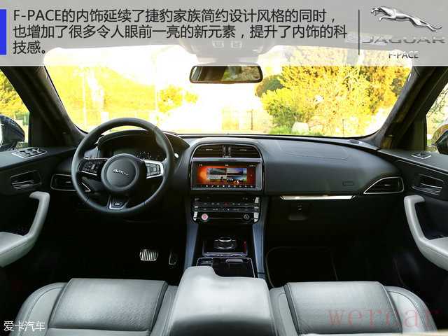 F-PACE的内饰在延续了捷豹家族简约设计风格的同时,也增加了很多令人眼前一亮的新元素,提升了内饰的科技感。当然,精致的工艺与高档用料也足以匹配车型的豪华定位。