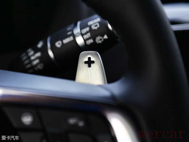 三辐式方向盘采用真皮包裹,配备电动调节,握感厚实。多功能区集成了包括ACC自适应巡航(选装)、蓝牙、方向盘电加热等功能。S高性能版车型配备的换档拨片还采用哑光镀铬饰面。
