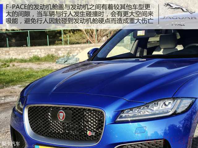 铝制发动机舱盖的造型设计不仅只考虑到美观,同时也有助于保护行人:F-PACE的发动机舱盖与发动机之间有着远较其他车型更大的间隙,一旦车辆与行人发生碰撞,会有更大空间来吸收能量,避免行人因触碰到发动机舱的硬点而造成重大伤亡。