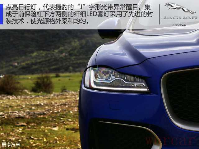 点亮日间行车灯,代表捷豹的“J”字形光带异常醒目。集成于前保险杠下方两侧的纤细LED雾灯采用了先进的封装技术,使光源格外柔和、均匀。