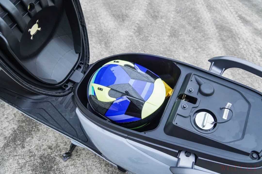 由于车身的紧凑设计,座垫下方的储物空间并不算是这个级别最突出的,但它仍然通过内部线条的优化,达成能够放下常见3/4头盔的小目标。踏板空间实测宽41cm、长24cm,具备不错的载物表现;座垫长度达到64cm,双载时也还称得上宽裕。