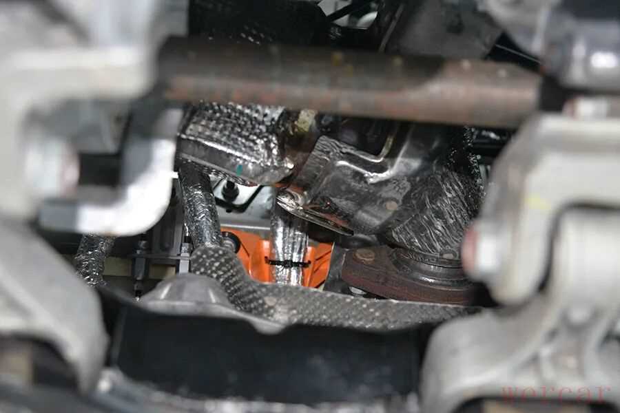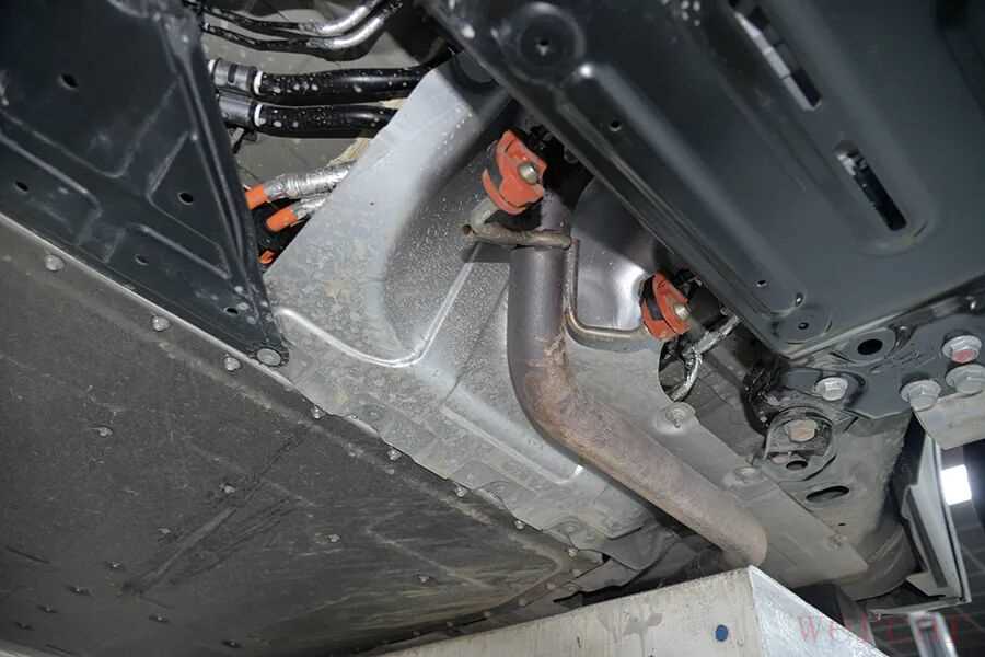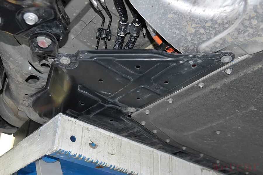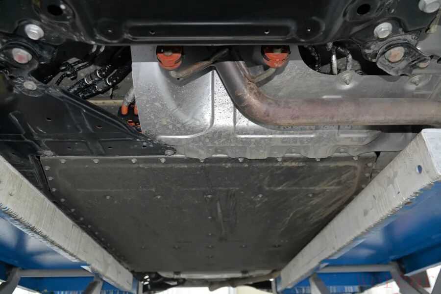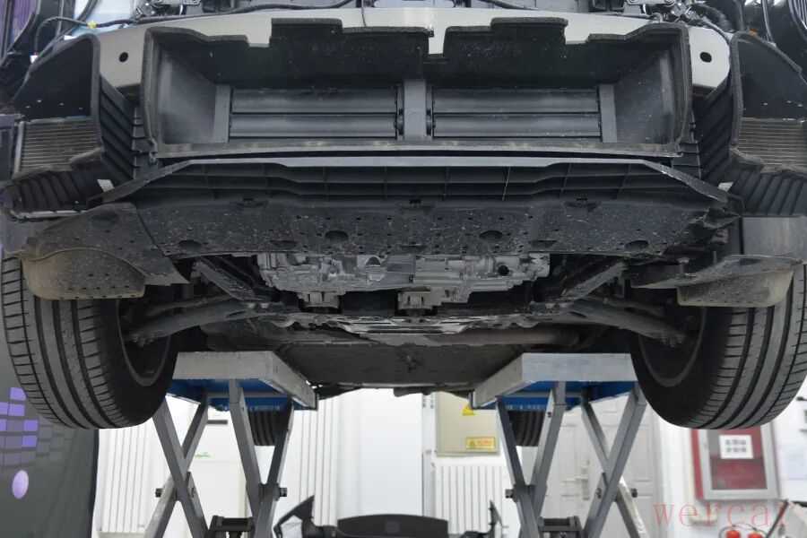这辆车的底盘平整度不错,发动机下方有塑料护板。