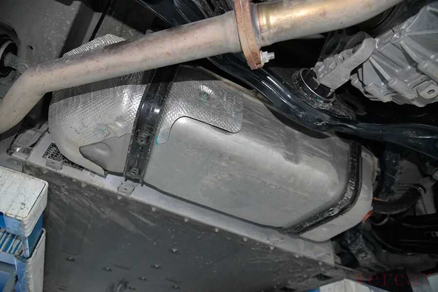 因为是插电混动车型,所以电池后方有一个50升的高压油箱,不锈钢材质。