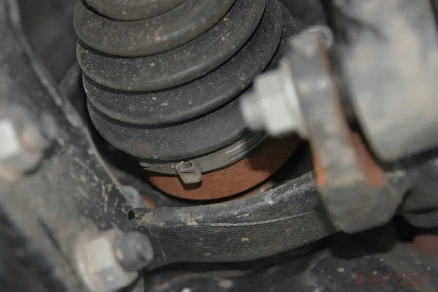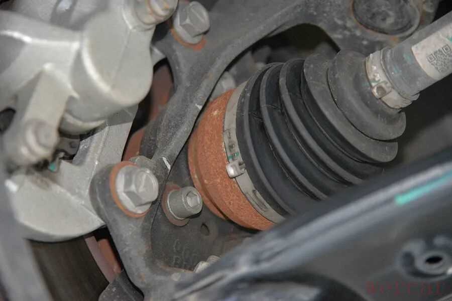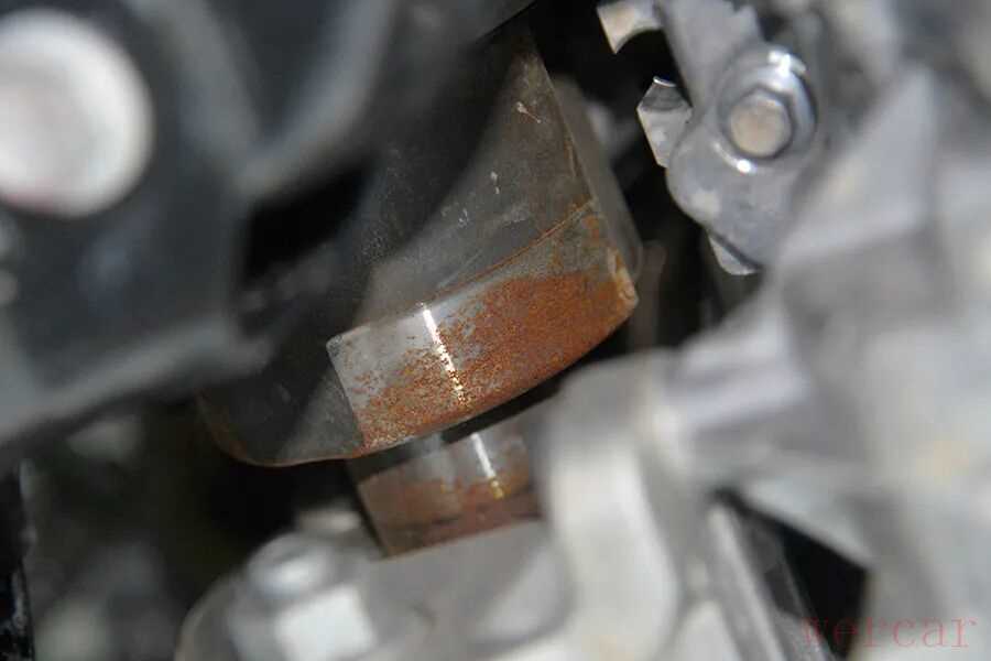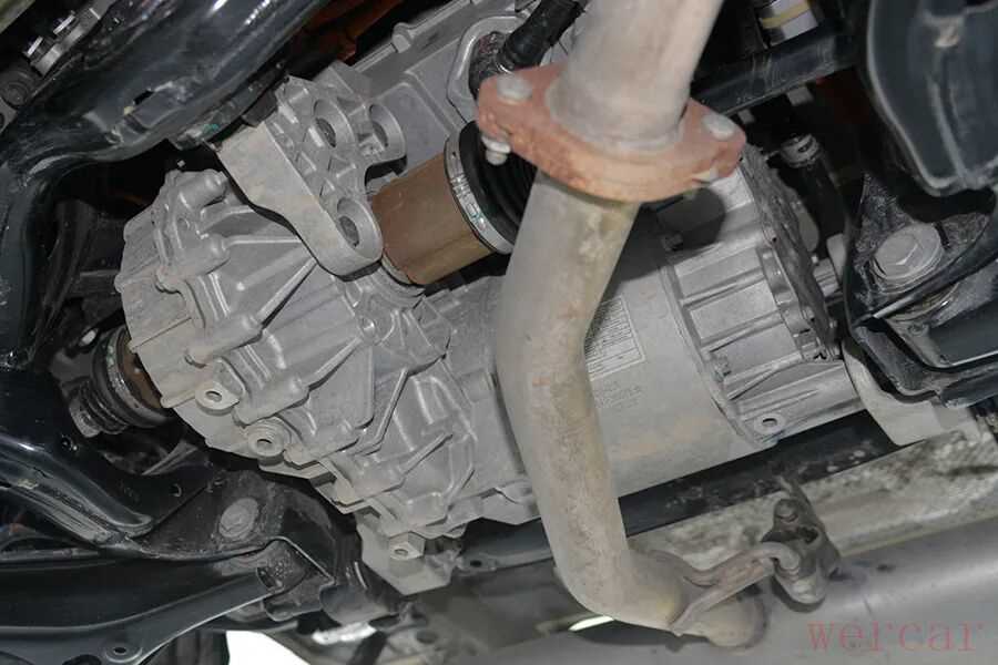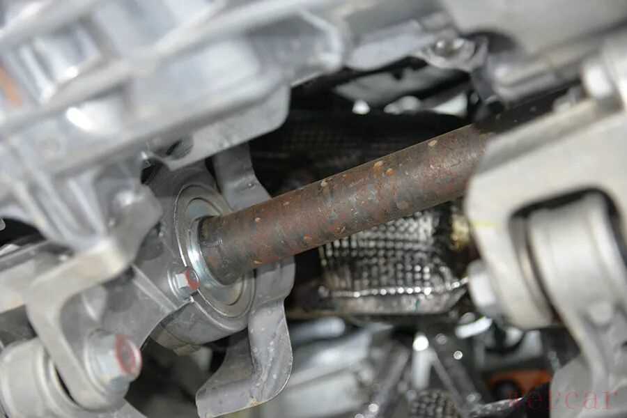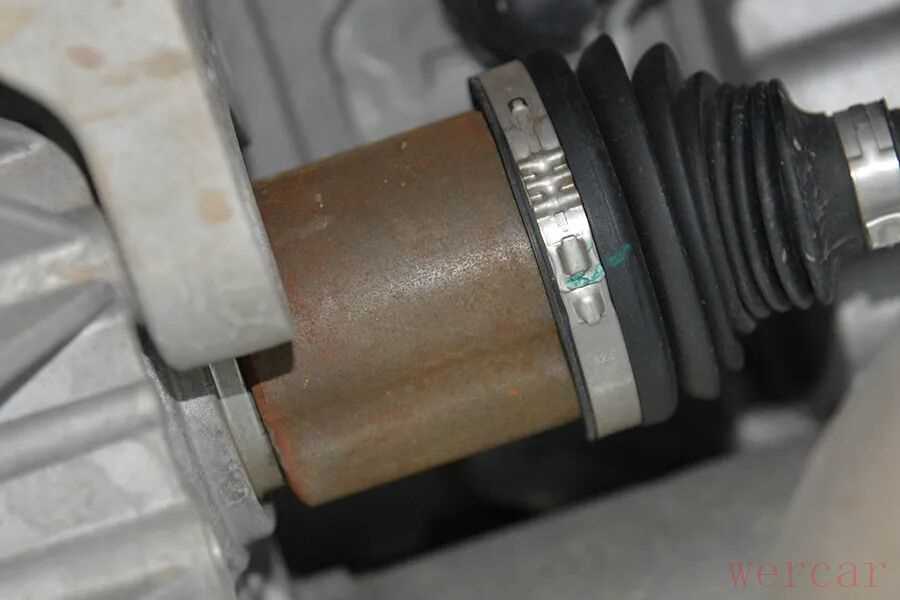 这辆车采用等长半轴设计,中央过渡轴已经出现生锈现象。