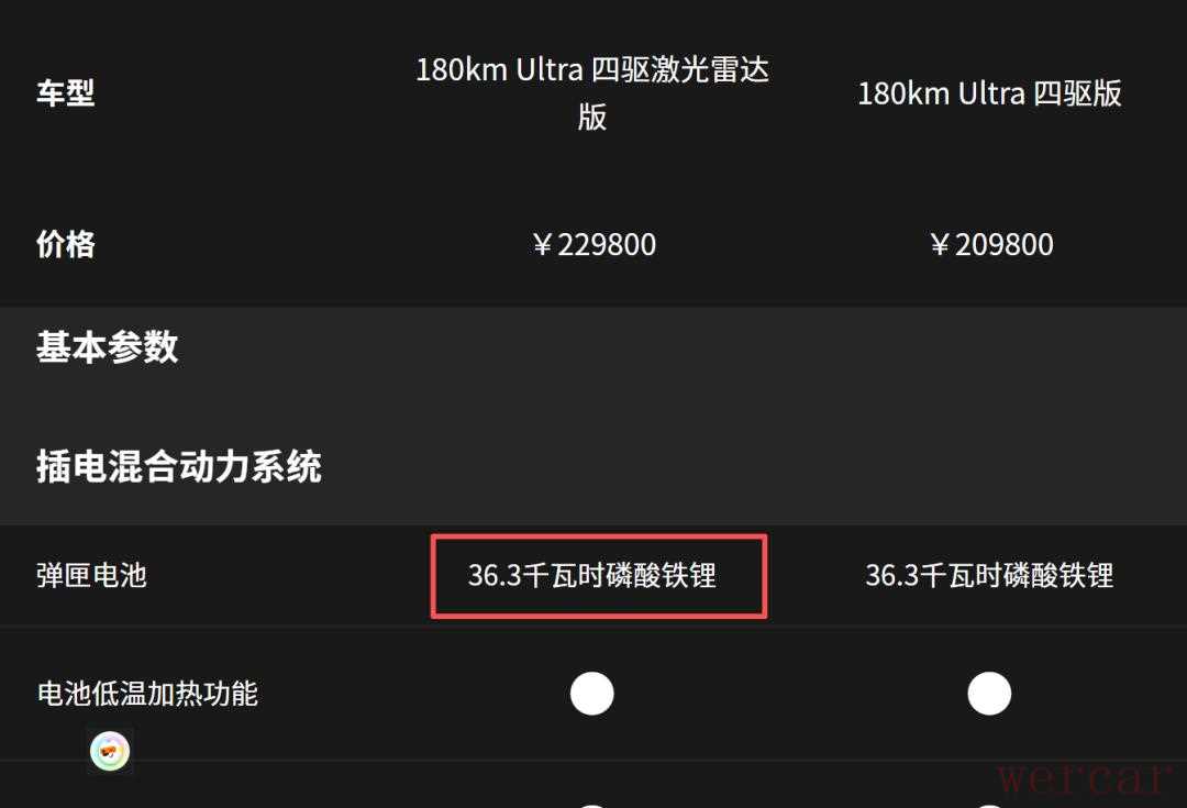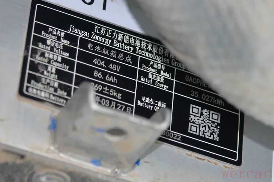 有意思的是电池铭牌写的额定容量为35.027千瓦时,而官方配置表标出的额定容量为36.3千瓦时。