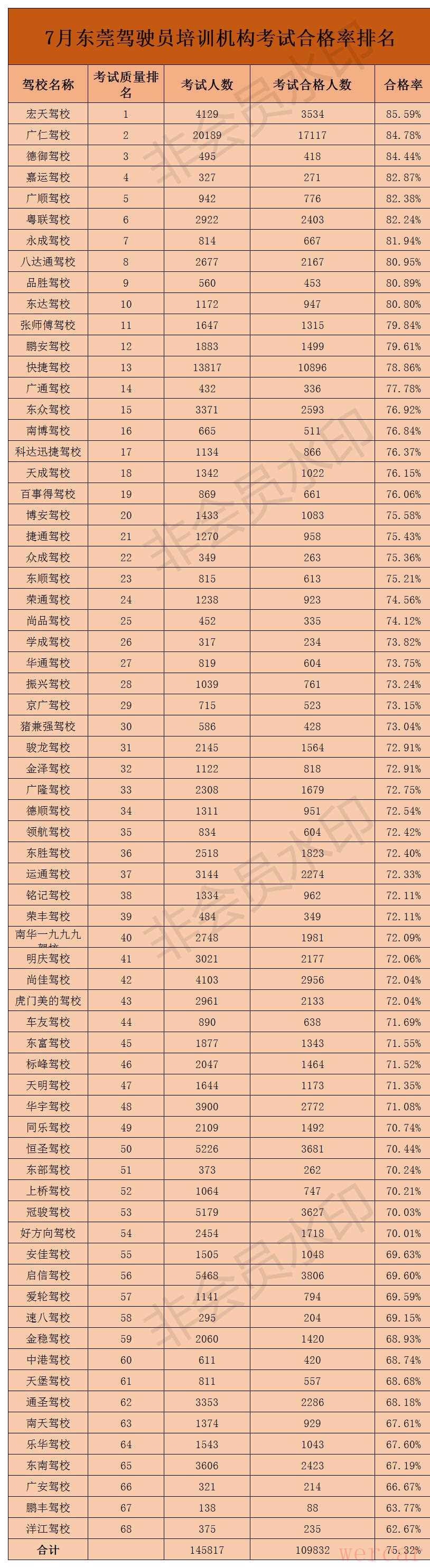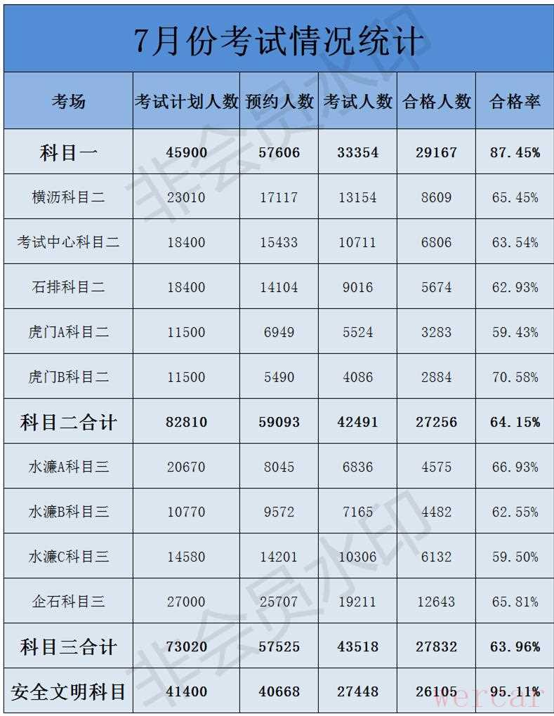 7月份东莞驾驶员培训机构考试合格率