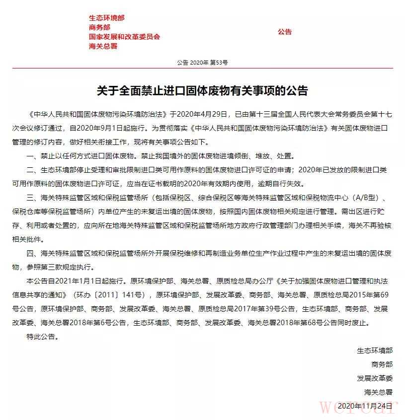 进入冬季后,国家大力整治环保,润滑油包装成本也居高不大。同时,据生态环境部网站消息,生态环境部、商务部、国家发改委、海关总署联合发布《关于全面禁止进口固体废物有关事项的公告》。