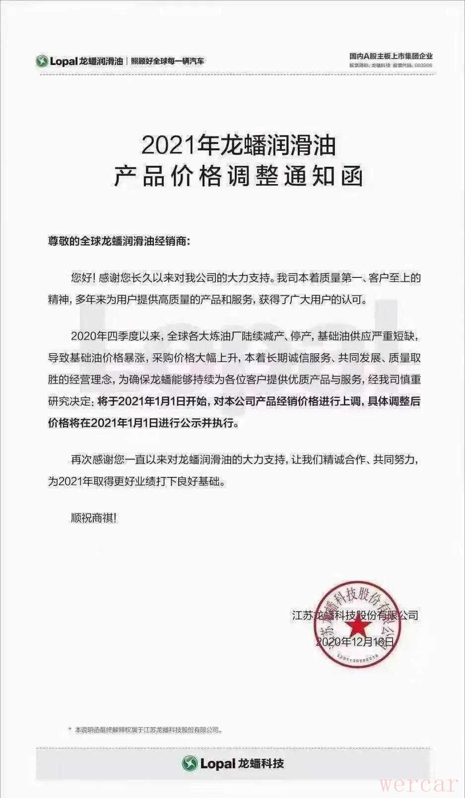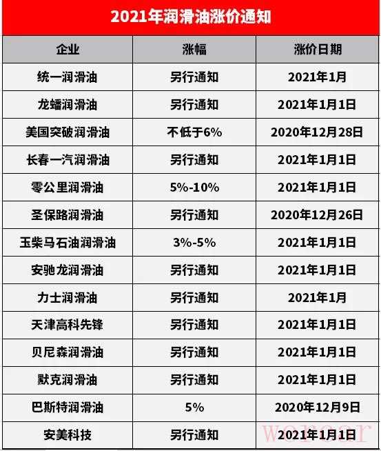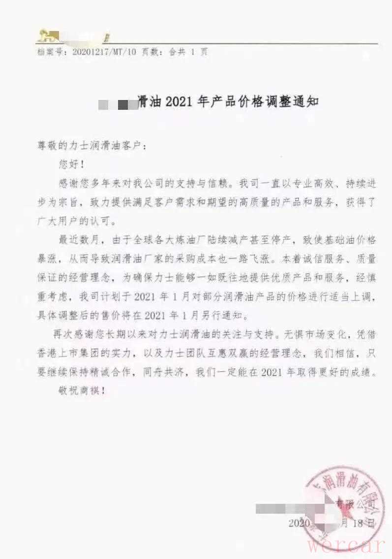 2021润滑油市场震动,几十家厂家齐发通知函,涨价大潮席卷而来