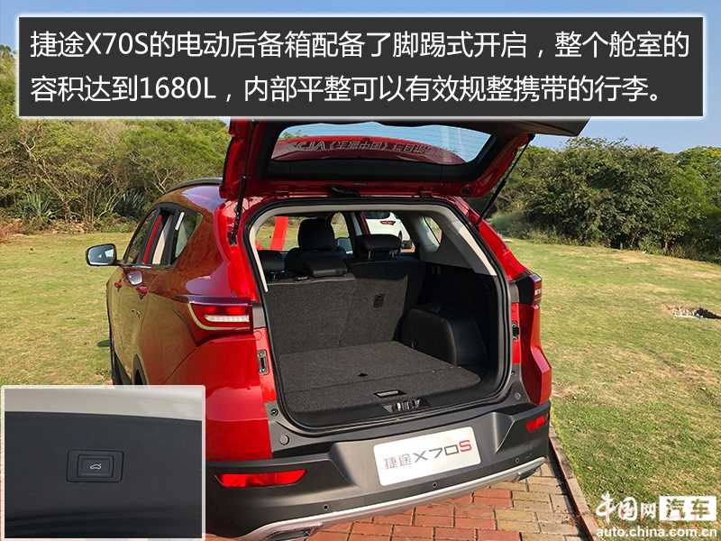 捷途X70S的电动后备箱配备了脚踢式开启,整个舱室的容积达到1680L,内部平整可以有效规整随车携带的行李物品,掀开后备箱底板还会发现四个超大储物格,大大提升了车辆的便捷性。