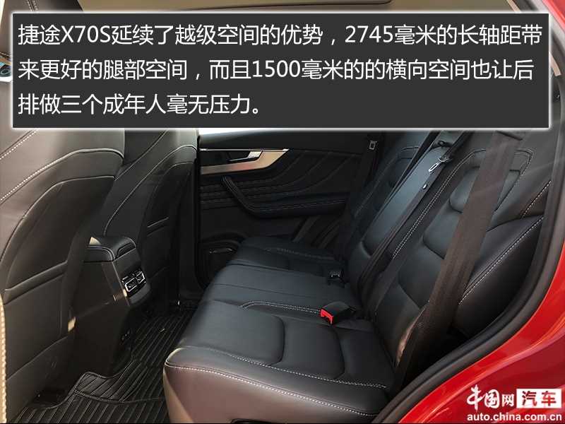 捷途X70S延续了越级空间的优势,2745毫米的长轴距带来更好的腿部空间,而且1500毫米的的横向空间也让后排做三个成年人毫无压力;其实这次体验给为带来的最好的体验是它的座椅,设计的非常柔软,300KM的试驾旅程不觉得劳累,与产品定位紧密结合,非常适合长途驾驶。
