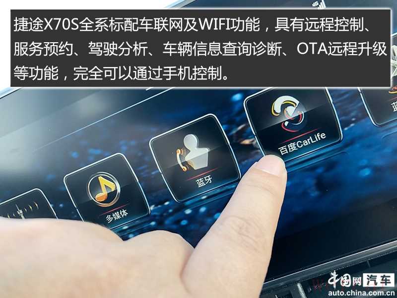 捷途X70S全系标配车联网及WIFI功能,具有远程控制、服务预约、驾驶分析、车辆信息查询诊断、互动、OTA远程升级等功能,完全可以通过手机控制;另外,声频识别智能启动功能、第三代无钥匙进入系统、手环钥匙功能,给用户带来更便捷的体验。