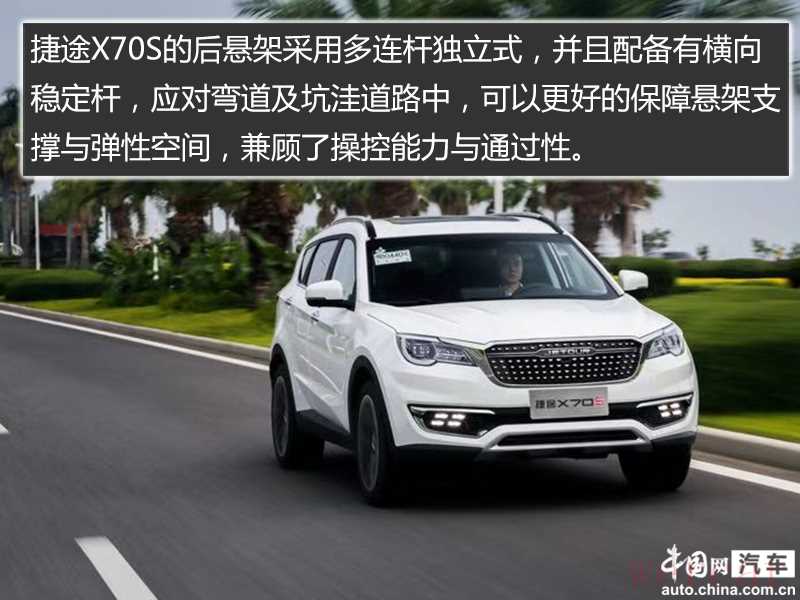 捷途X70S的后悬架采用多连杆独立式,并且配备有横向稳定杆,应对弯道及坑洼道路中,可以更好的保障悬架支撑与弹性空间,兼顾了操控能力与通过性。由于采用运动化的调教方式,捷途X70S宣称拥有38米的百公里制动距离,后续我们有机会再去验证。