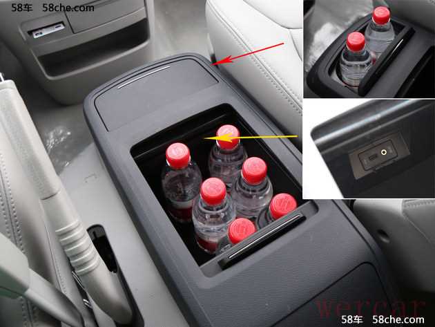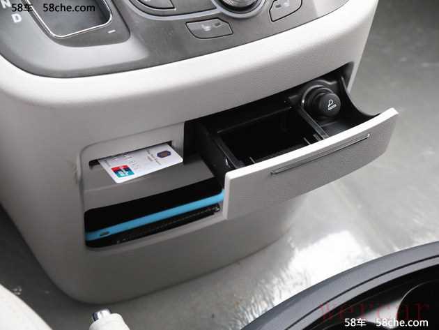 △ 中央扶手箱容积不小,但并不深,只能容下小瓶的矿泉水。USB和AUX接口安置在手套箱的最前方,藏得有点深,插拔有一点不方便。