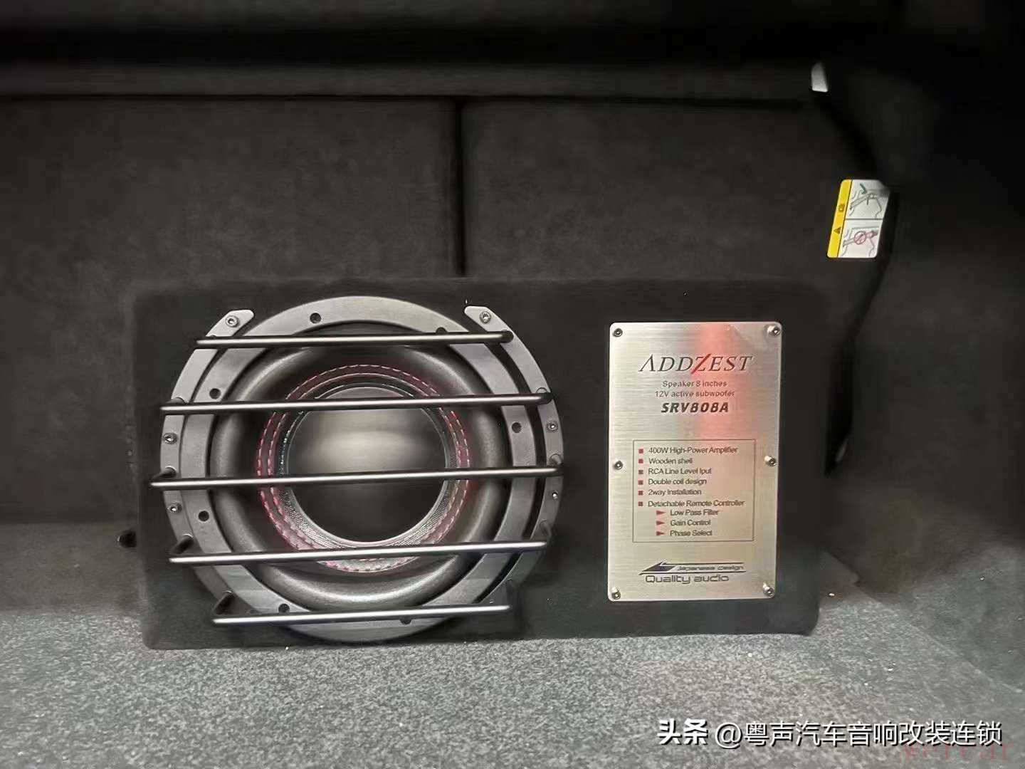 在后尾箱安装一台【歌乐SRV 808A】箱体低音炮增加低频的下潜力度。【阿尔派PXE-R500】处理器通过专车专用对接线无损安装,为整体音响频率提升解析力,保证音源质量,经过处理器处理的音质平衡感、空间感、层次感都有更大的提升。
