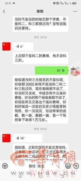 6月9日上午,未能参加考前强训的李先生,没去参加考试。华商报记者在丈八东路的庆华驾校门口见到了他。该驾校倪姓负责人说,400元是强训场地费,100元练一圈,“没有保过费,没有VIP,这都是交给场地的钱,不是我收的。”那么,聊天记录中的VIP和正常有何区别?倪姓负责人连续多次否认称“没有保过费,没有VIP”。但在记者追问下,他随后又改口称,VIP费用1000多元,其他学员不用交强训费和VIP费用,是因为其他学员报名时就报的是VIP。“他什么时候过期是国家定的,跟驾校没关系。”倪姓负责人否认了驾校借李先生快到期而故意卡要费用,“跟那没关系。”