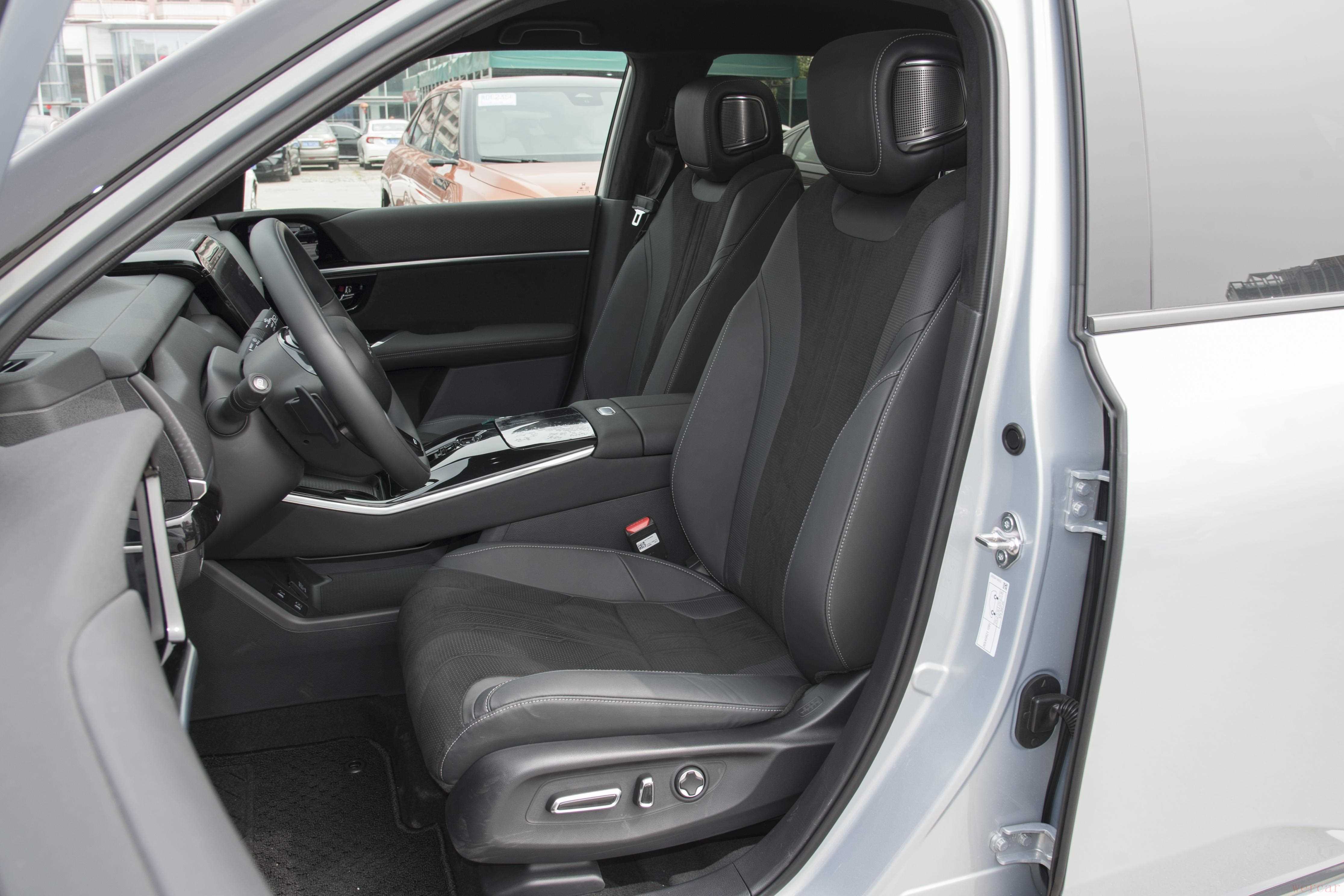车内座椅材质比较柔软,包裹性和支撑性都还可以,长时间乘坐不会觉得腰酸背痛。四座均配备通风、加热、按摩功能,还有带侧向支撑性的航天级头枕,在同级别车型中,这样的舒适性配置比较丰富,在夏天和冬天能极大提升乘坐体验。车内储物空间较多,门板储物格、中控台下方的储物槽等,日常放些小物品很方便。后备厢容积较大,预计超过 500L,能轻松装下几个大行李箱,满足一家人出行的装载需求。如果需要搬运大件物品,后排座椅可放倒,进一步拓展载货空间,实用性大大增强。