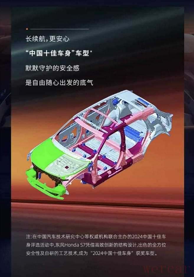 在安全方面,东风 Honda S7 搭载一体化压铸全铝壳的大容量高密度电池,采用宁德时代的三元锂电池,电池预碰撞结构设计将冷却、保护等功能集成,白车身荣获 “2024 中国十佳车身”,并配备 11 个安全气囊。相比部分同级别车型,它在安全配置上较为丰富,能给驾乘人员提供一定的安全保障。不过,安全配置只是一方面,实际的安全性能还需要通过更多的实际测试和长期使用来验证。