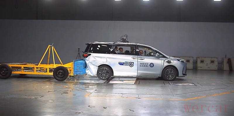 2. "MPV三排安全碰撞纪录:" 明确指出了这一纪录是在针对MPV车型中最重要的三排乘客区域进行的安全碰撞测试中取得的,这通常意味着对儿童和后排乘客的保护达到了极高水准。