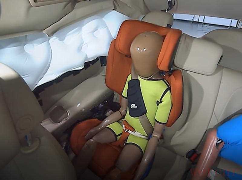 叠加高速侧面碰撞时,GL8陆尚侧气帘瞬间展开并完整覆盖整个车窗区域