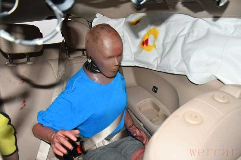 高速追尾碰撞时,GL8陆尚的弓形设计后防撞梁有效吸收并化解冲击力。在连续两次超高强度碰撞中,GL8陆尚都交出了极为优异的答卷。结果显示,在两次撞击后,车辆均在第一时间关闭油泵,双闪灯和内饰灯立刻点亮,5秒内全车正常高压下电,车门15秒后自动解锁并可手动开启——此项延时设置为防止车辆出现翻滚或二次碰撞时车门被误打开;车内无尖锐飞溅物,避免对乘员造成二次伤害;儿童座椅固定牢靠,成人假人与儿童假人均受到有效保护;车机屏幕显示SOS拨打界面,安吉星默认开启最大双通音量,并自动发送完备的救援信息。在经历侧面撞击后,侧气囊及一体式气帘同时点爆,气帘完整覆盖整个车窗区域,面积超过C-NCAP要求50%,既给乘客头颈部提供有效保护,也防止乘客甩出窗外;且气帘压力可驻留长达半小时,能有效防止外物侵入造成二次伤害。在经历了来自不同方向的连续两次高强度撞击后,全车座椅均保持完好,前排和第二排座椅的电动功能正常,第三排乘员舱生存空间充足,三排乘客均得到了最大程度的安全保护。