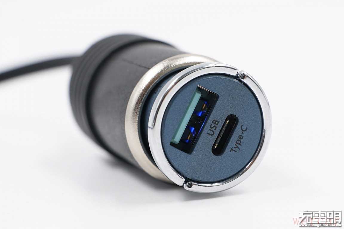 模拟将车充插入点烟器,可以透过USB-A接口看到内部的蓝色,起到提示作用。而且车充确实比较迷你,插入后,只漏出很小一部分。