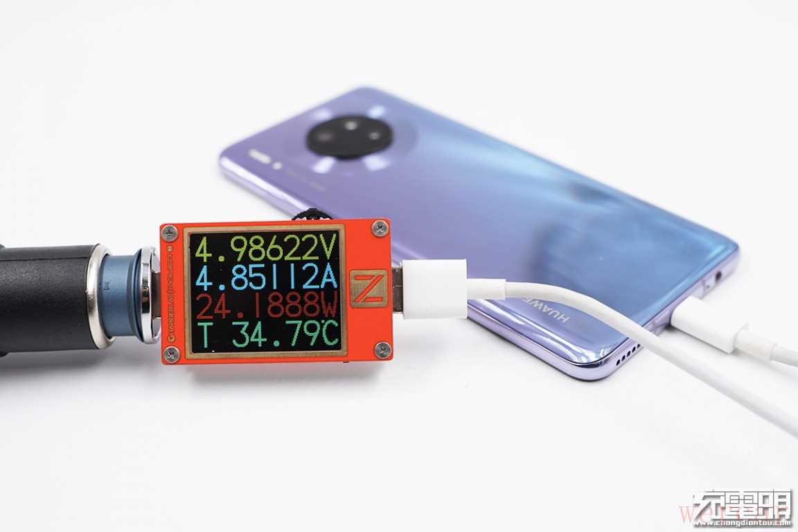 华为 Mate30 支持SCP、FCP和 USB PD快速充电协议,功率为4.98V 4.85A 24.18W。