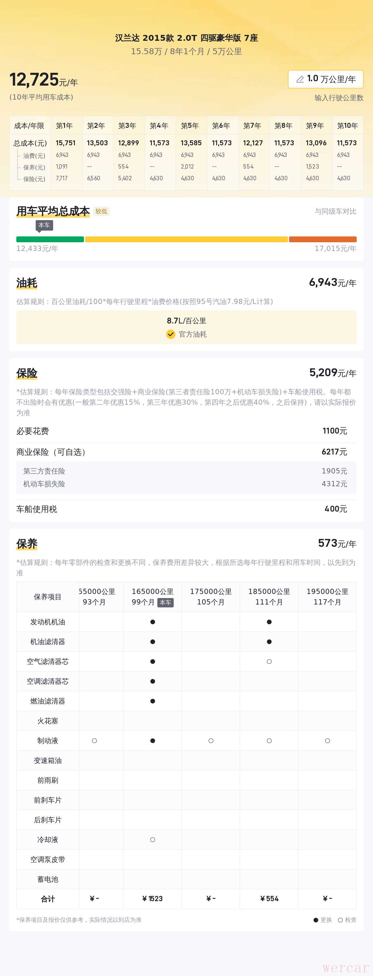 综上所述的新车含税价、用车成本、市场行情、优势分析、同款比价等数据仅供参考。在配置部分,因为二手车非标品,车辆可能会存在配置改装的情况,具体车况信息需要线下结合车辆实际情况进行综合参考。