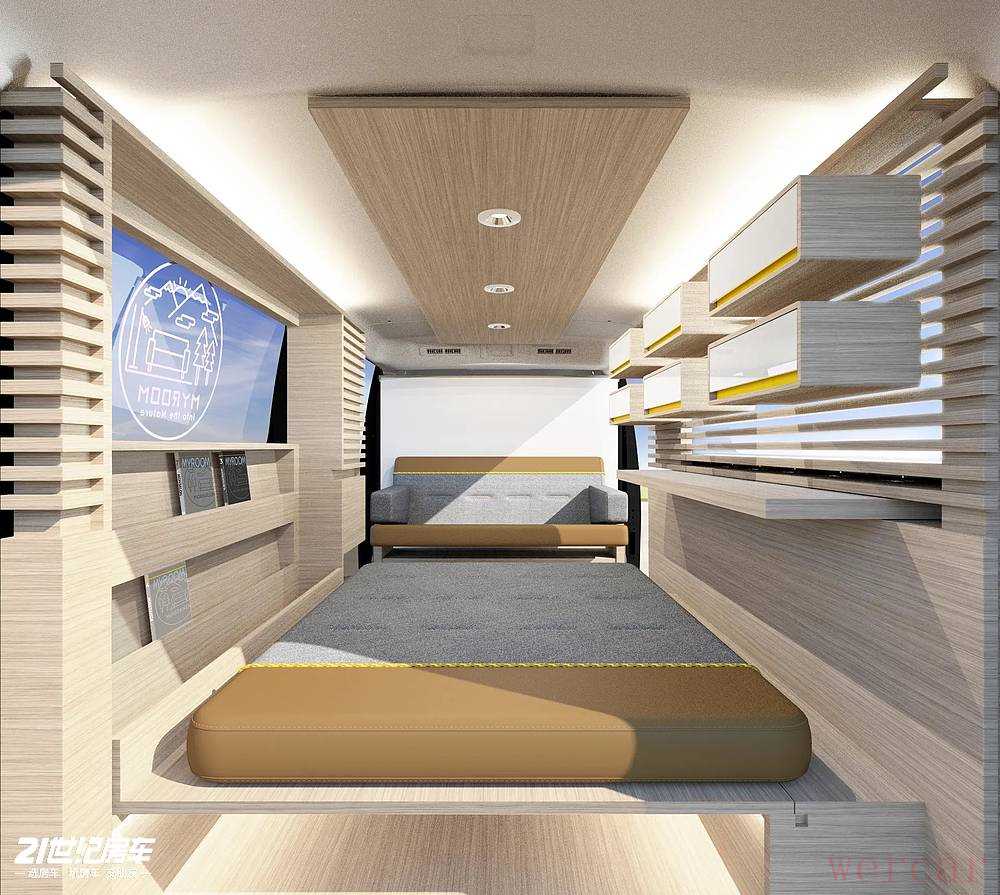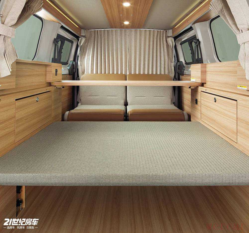 "多功能性:" MyRoom版本通常会重新设计内部布局,将原本的乘客座位拆除或移除,最大化地利用可用空间。这使得车内形成一个更宽敞、更适合居住的区域。